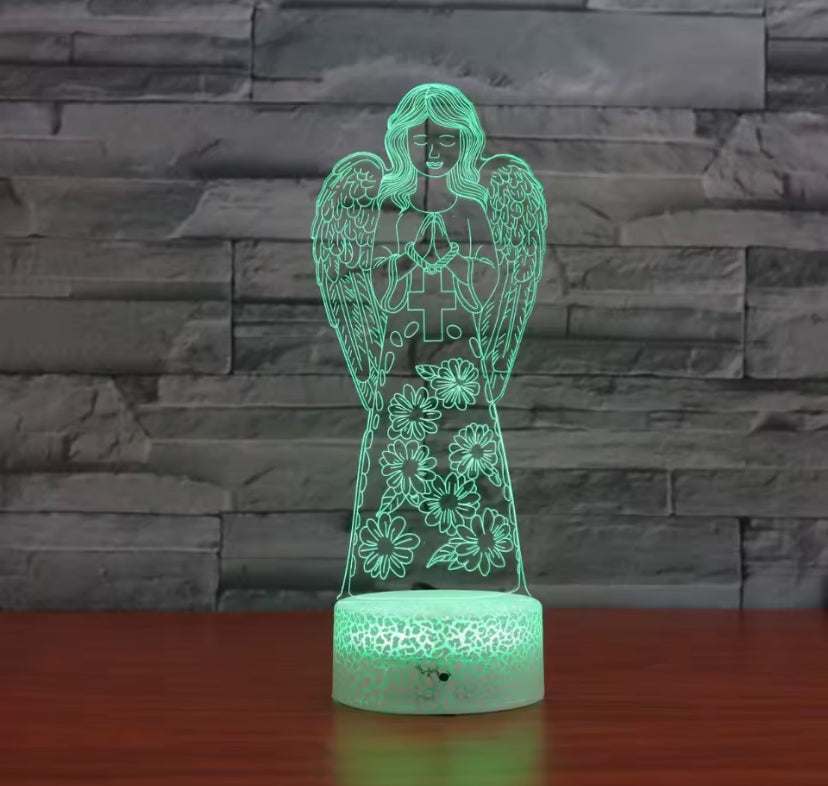 Laat je ruimte stralen met de hemelse uitstraling van deze Bloemen Kruis Biddende Engel 3D Nachtlamp. Deze lamp brengt een gevoel van rust, geloof en bescherming in huis. De combinatie van het bloemrijke kruis en de serene biddende engel symboliseert liefde, zuiverheid en hoop — een herinnering dat het licht van het geloof altijd aanwezig is, zelfs in donkere tijden.