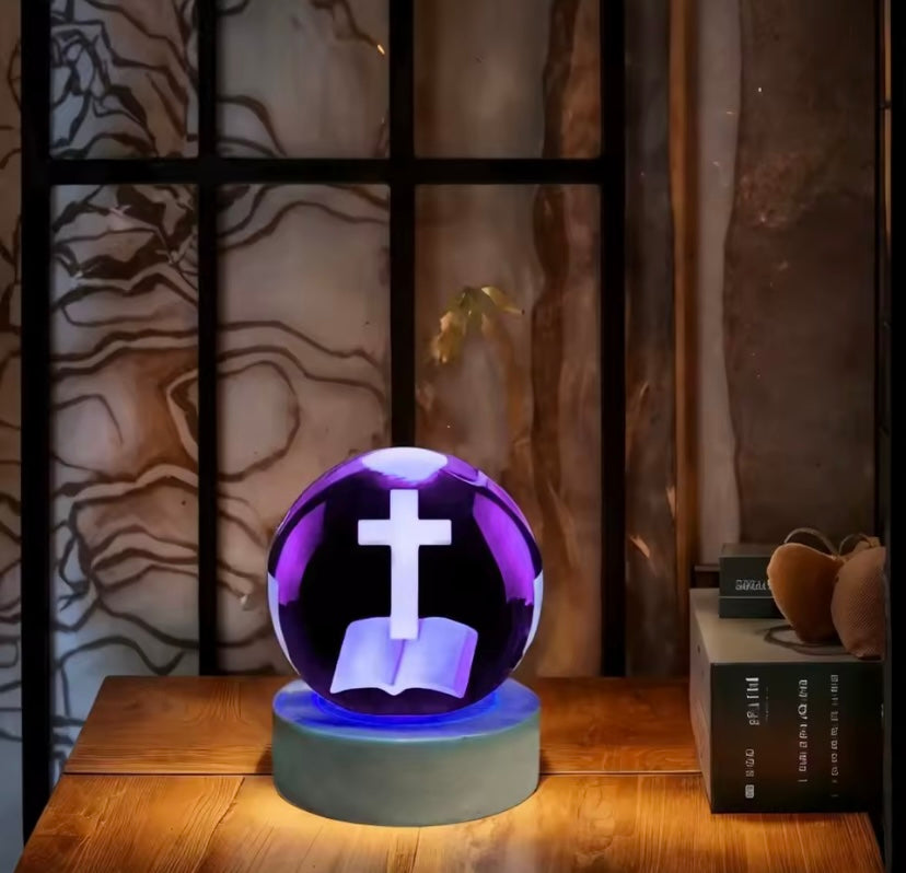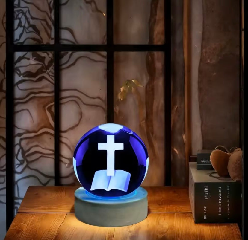 Elke bol bevat een zorgvuldig laser-gesneden christelijk symbool, dat in het glas zweeft alsof het door God zelf verlicht wordt. Het is niet zomaar een decoratie, maar een spirituele herinnering aan hoop, liefde en geloof, perfect om rust en licht in huis te brengen.