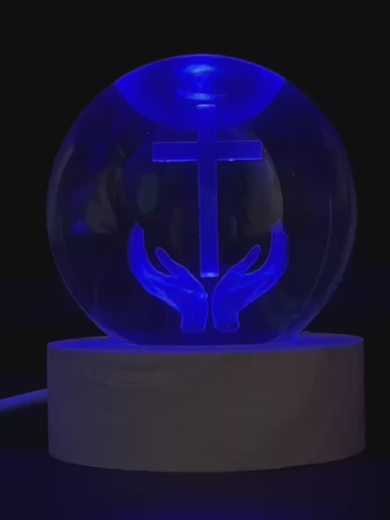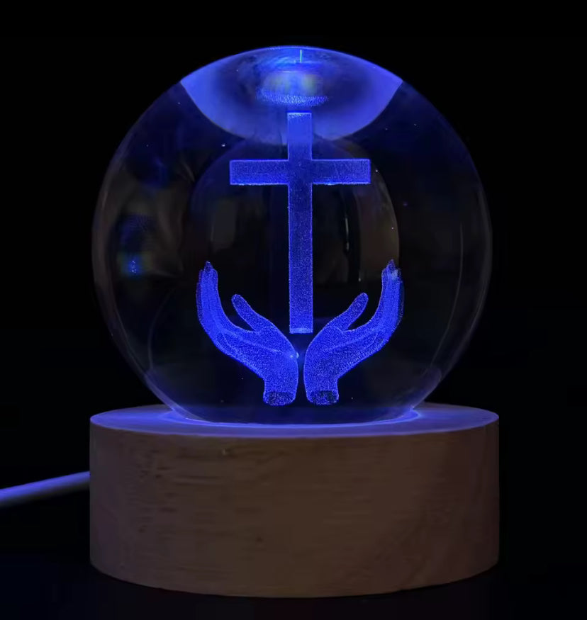 Elke bol bevat een zorgvuldig laser-gesneden christelijk symbool, dat in het glas zweeft alsof het door God zelf verlicht wordt. Het is niet zomaar een decoratie, maar een spirituele herinnering aan hoop, liefde en geloof, perfect om rust en licht in huis te brengen.