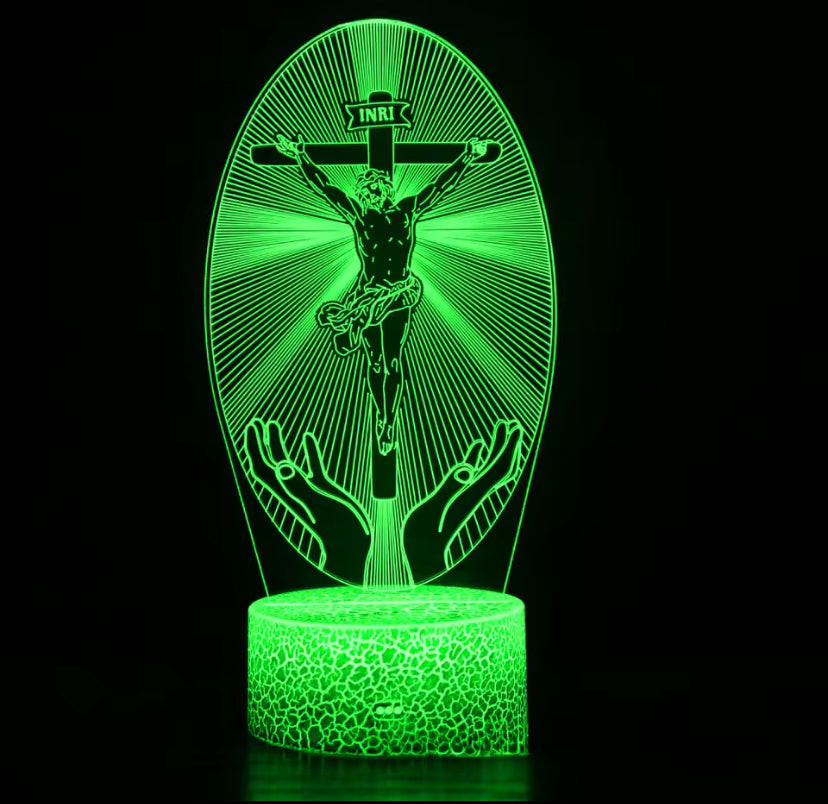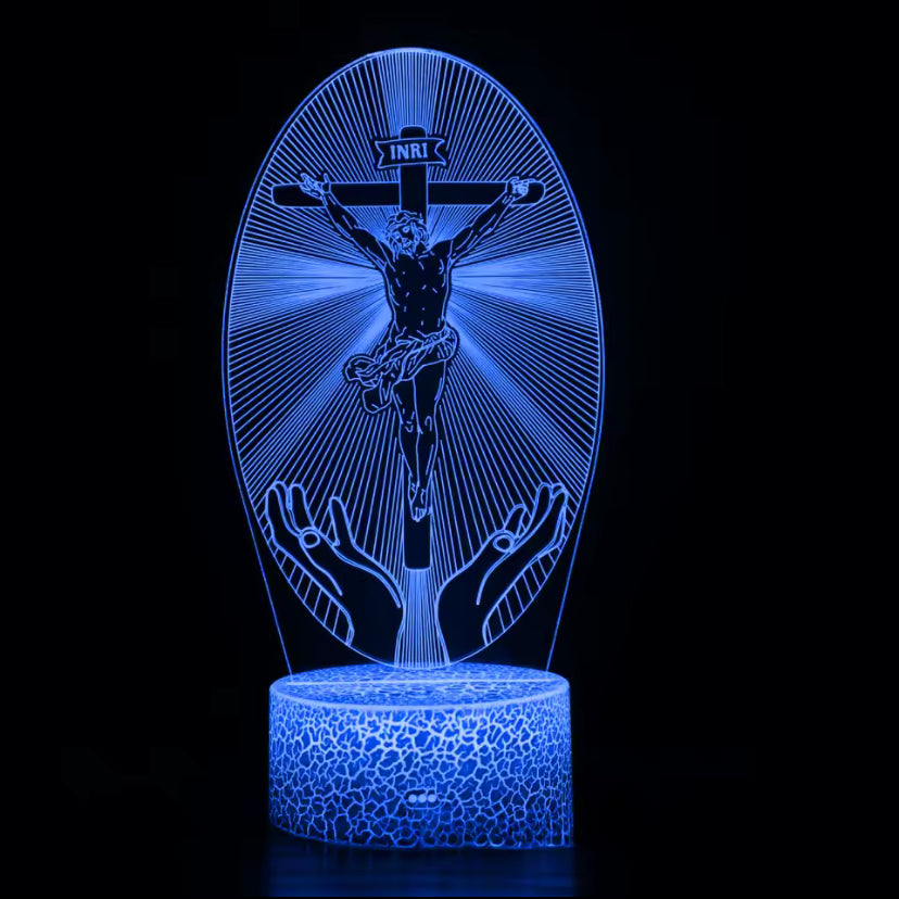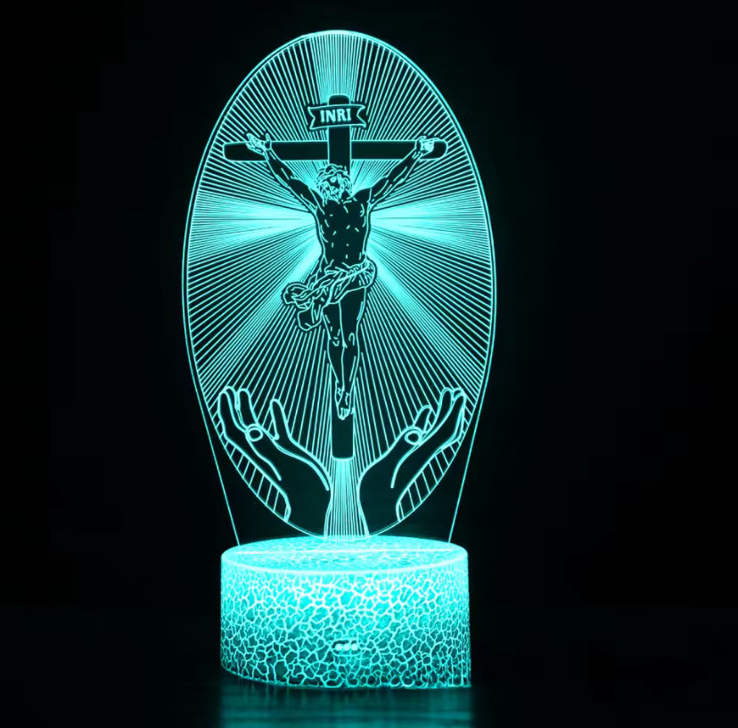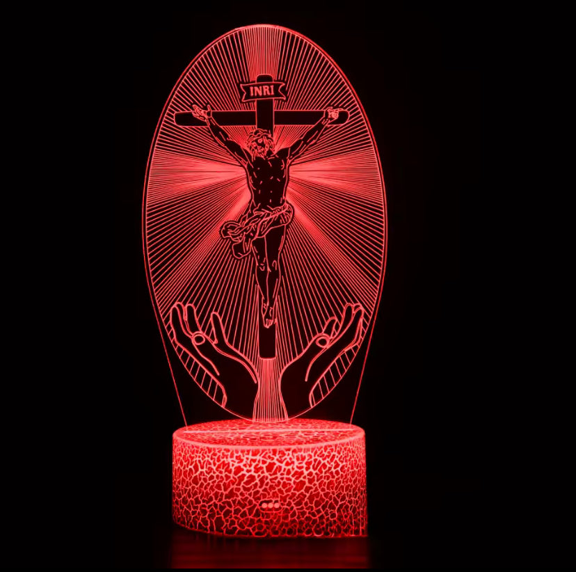 Breng het heilige licht van Jezus in je huis met deze prachtige Nacht Jesus Cross 3D Illusie Lamp van Christian Essentials.
