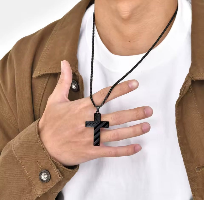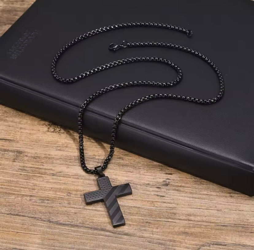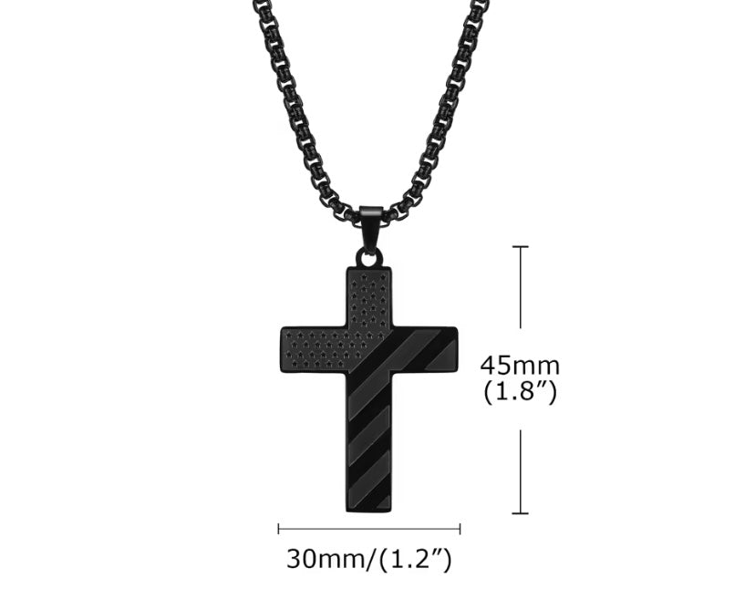 Deze Amerikaanse vlag kruis hanger ketting is een stoer en betekenisvol sieraad dat stijl en geloof combineert. Gemaakt van duurzaam zwart roestvrij staal, hypoallergeen en stevig – ideaal voor dagelijks gebruik of speciale gelegenheden. Het gedetailleerde, getextureerde vlagontwerp geeft een unieke uitstraling.