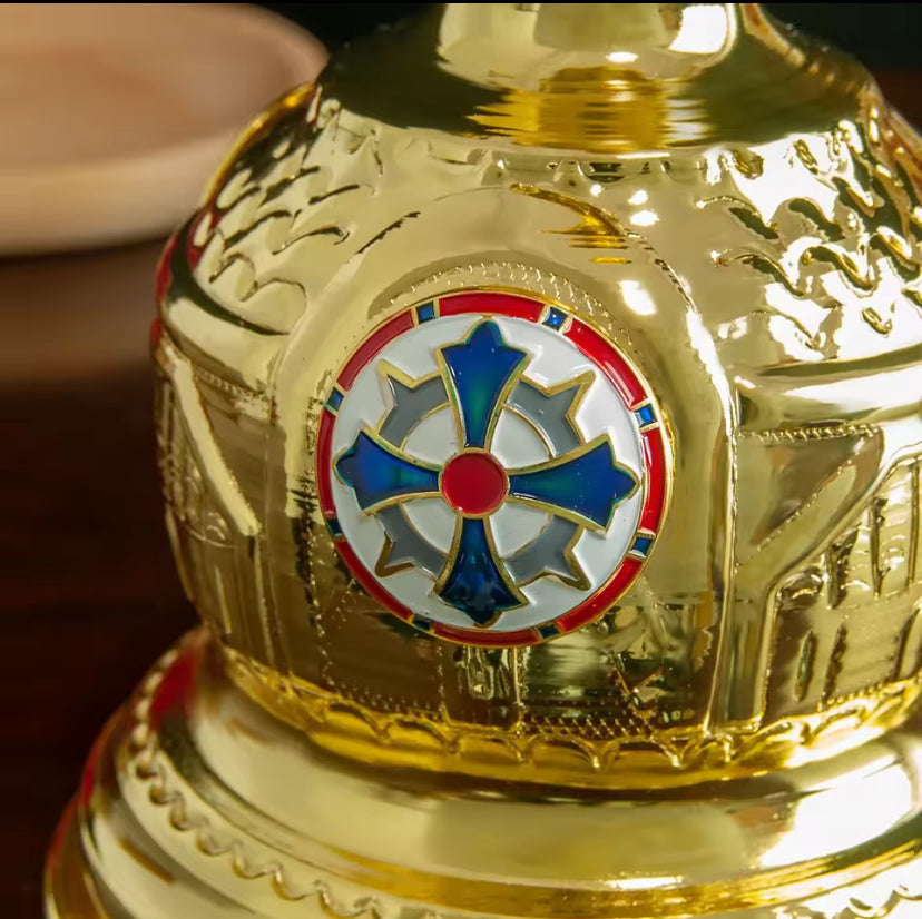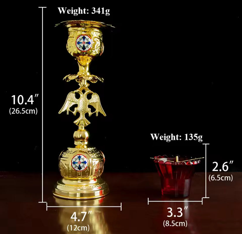 Een prachtige rode olielamp, versierd met kruisdetails. Ideaal voor gebruik bij rituelen of als decoratief religieus symbool.