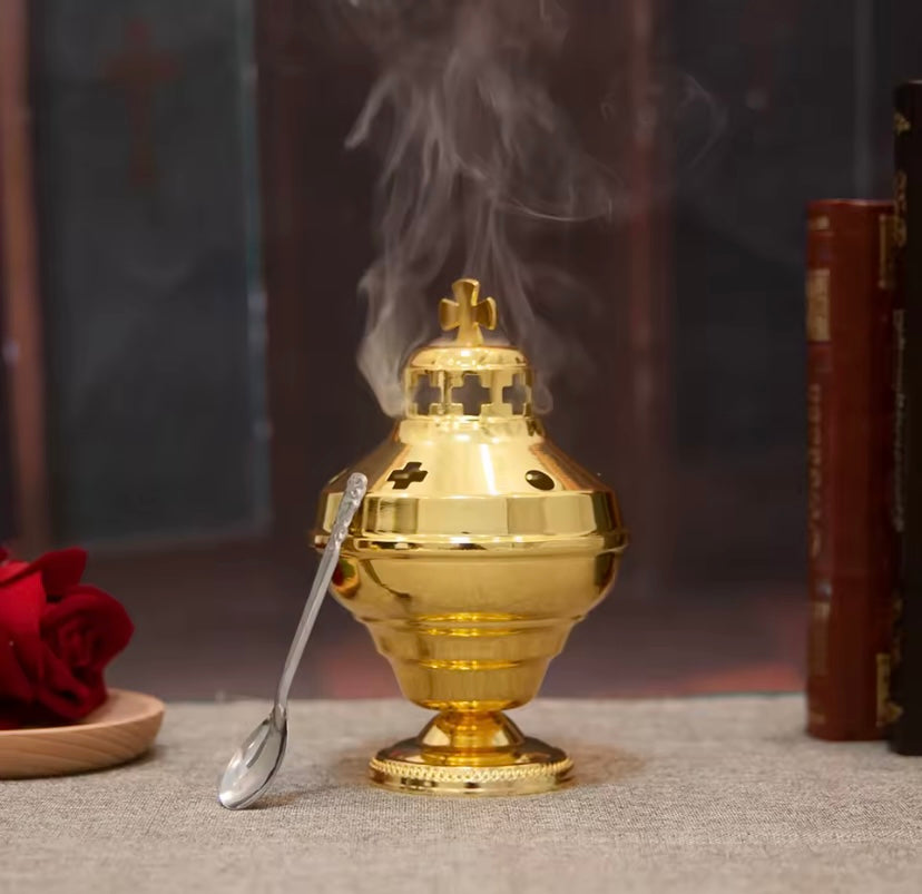 Deze authentieke kerkmassabenodigdheden bestaan uit prachtig vormgegeven wierookbranders die klassieke en oosterse stijlelementen combineren. Het ontwerp weerspiegelt een rijke traditie en brengt een spirituele en verfijnde sfeer in iedere ruimte. Perfect voor gebruik tijdens religieuze ceremonies of als elegante decoratie in huis of kerkelijke omgeving.
